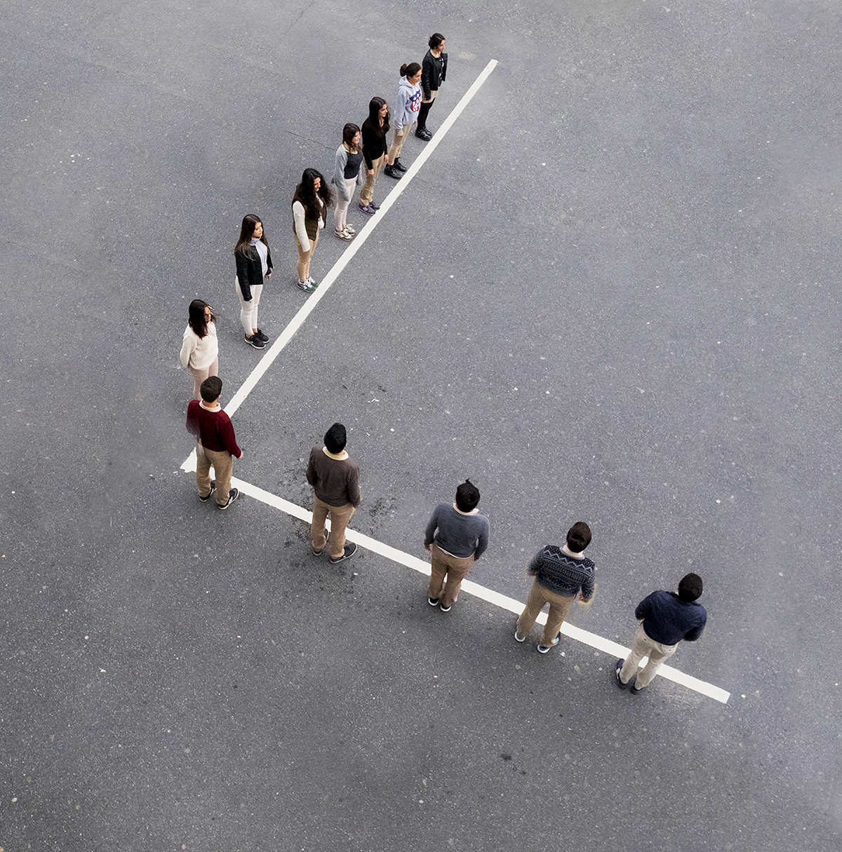 Okul bahçesinde cinsiyetlerine göre sınıflandırılarak sıraya geçirilmiş öğrenciler, 2015
