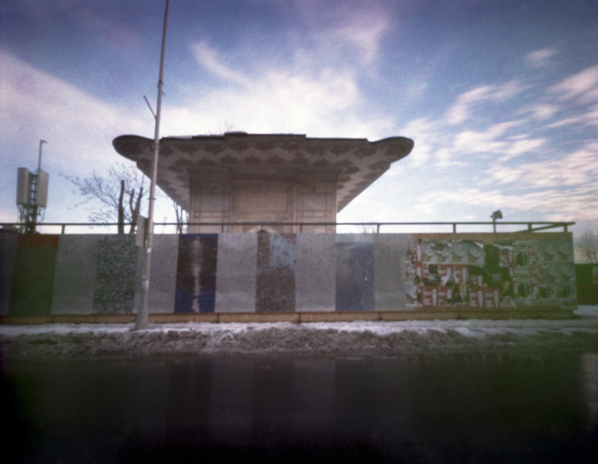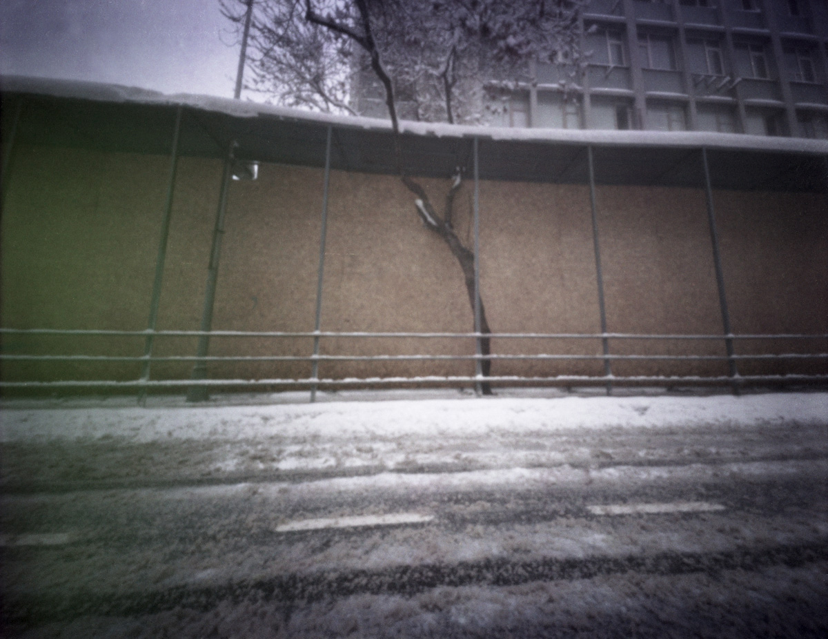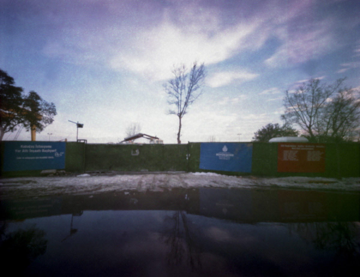 Kabataş'ta yaşayan tek bina olan okuluma gitmek için her gün paravanlar ile çevrelenmiş inşaat alanından geçmekteyim. Ben okulun, okul da proje alanının parçası olduğu için, bu paravanların etrafımı çevrelediğini fark edemedim. Bu süreçte iğne deliği (pinhole) bir kamera yaptım. Makro düzeyde kentin hızla değişimine bakan gözüm, mikro düzeyde anları teknik olarak mümkün olan en yavaş şekilde kaydetti. Etraftan geçen insanların, hızla değişen kenti görmek için inşaat paravanlarına delik açtıklarını farkedip, ben de bu dönüşümü iğne deliği açtığım makinemle belgeledim. Tıpkı insanların paravanlara açtıkları delikler gibi, makinem de bu dönüşüme açtığım göz oldu.
