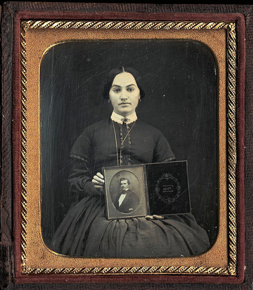 Bilinmeyen Fotoğrafçı, Oturan Kadın Daguerrotype tutarken. 1850
