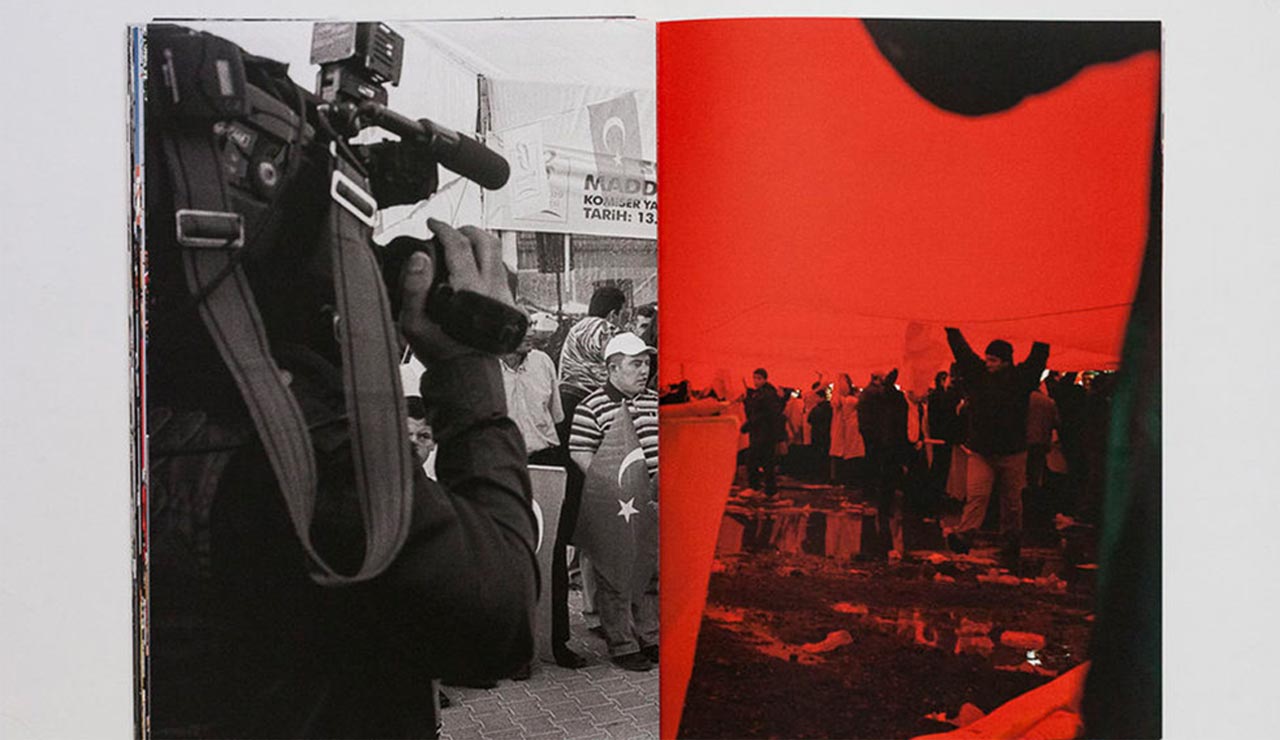 Ben bu fotoğrafları çok uzun zamandan beri çektiğim için -yani en eski fotoğraf 2006 yılına ait- nerede sonuçlanacağı belli olmayan bir işti. Ama benim kafamda hep kavram olarak, bağlam olarak var olan bir konuydu. Mütemadiyen gidip çekiyordum. Önemli günlerin ve haftaların takvimini çıkarttım, planlanan etkinliklerin takvimini çıkardım. Her boşluğum olduğunda "Önümüzdeki hafta bu varmış. Şuna mı gitsem? Buna mı gitsem?" diye takip ediyordum bunları. Bu kadar uzun zamana yayıldığı için; farklı makineler kullandım. Bir süre renkli, bir süre siyah beyaz film kullandım. O yüzden farklı tarzlarda birçok fotoğraf oluştu. Bir sergi formatında ya da standart bir kitap formatında, farklı formatları yüzünden bir araya gelemediler. İnternet sitesinde bile tam olmadı. Ama Okay'ın önerdiği bu tasarım kitaba tam oturdu.