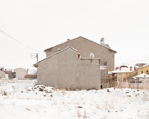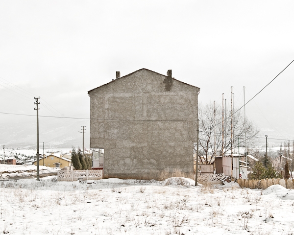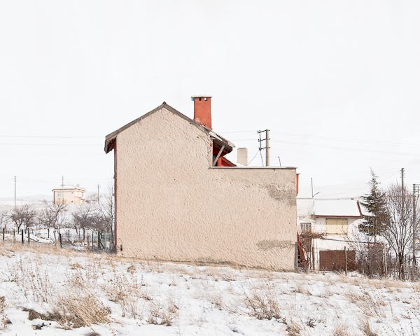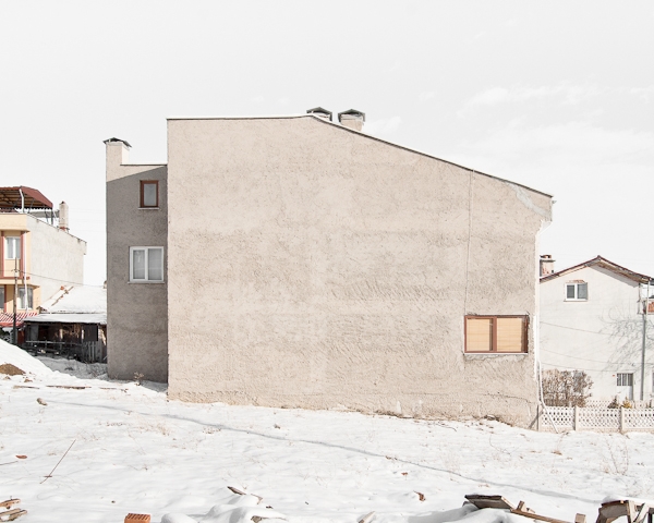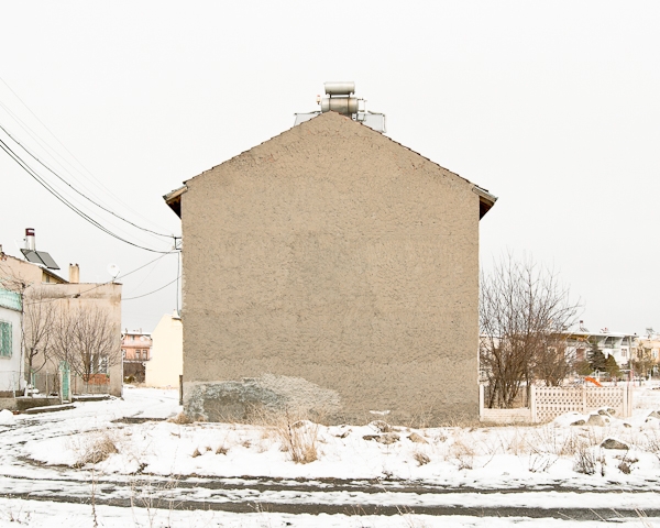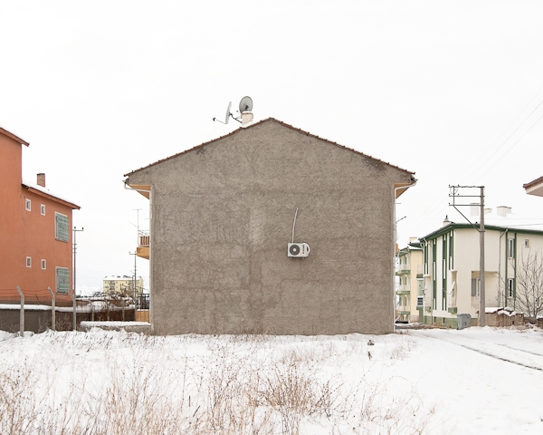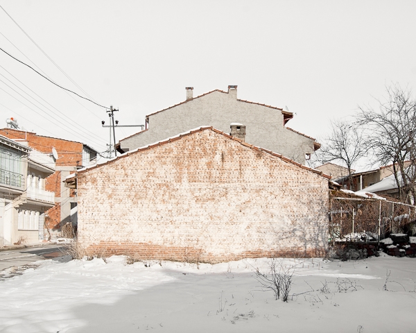 Kütahya'ya kaplıcalar için gitmiştim… Şans eseri oraya gittik ve ben kaplıcalardan bunaldığım için yürüyordum sokaklarda. Baktım bu evler bomboş, sağır evler gibi. O zaman fotoğraflarını çektim, ödünç bir Linhof'la. Çok ilgimi çekti bu ve proje böyle başladı. Daha yeni tekrar döndüm oraya, iki gün önce de oradaydım Bu sefer kar vardı ve ışık tam istediğim gibiydi. Proje, asıl şimdi yerine oturdu. İki yıl içinde farklı zamanlarda farklı güneş açılarıyla çekmiş oldum. Bu sefer her şeyden once bulutlar yoktu, gitsin bulutlar… Düz dursun gökyüzü, boş olsun, gri gökyüzü vardı.